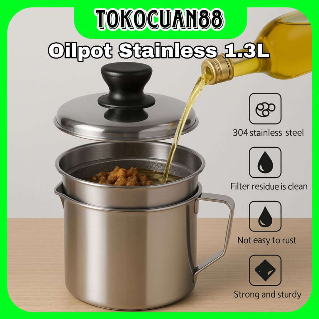 Tokocuan88- Oil Pot Filter 1.3 Liter/ Oilpot 1 L/ Saringan Minyak Stainless Steel/ Oilpot Stainless