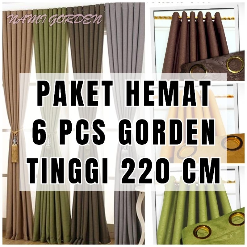 Promo 6 Pcs Gorden Jendela Dan Pintu Minimalis Smokeing 10 Lubang Terlaris Ukuran L.110cm X T.220cm
