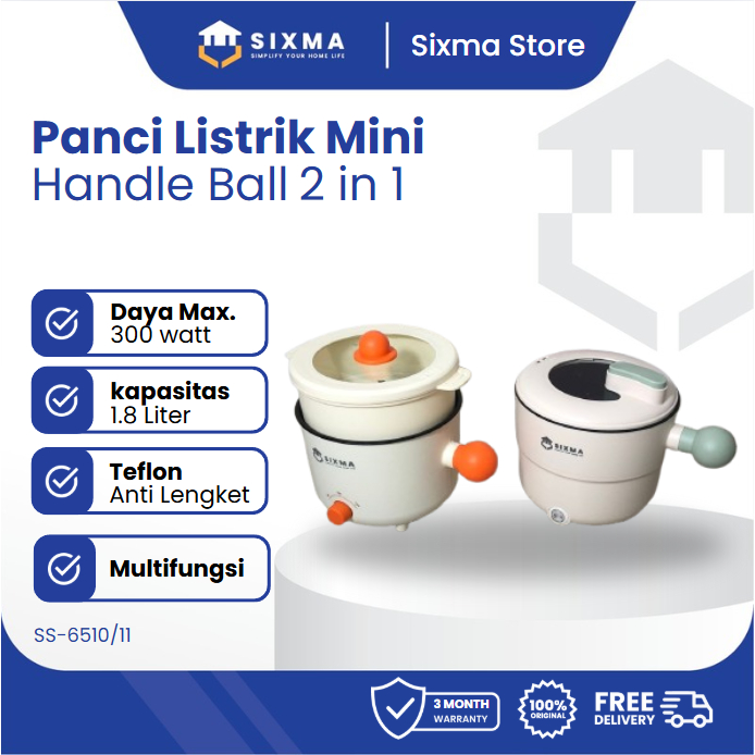 Panci Listrik kukusan Anak Kost Multifungsi 1.8 Liter Handle ball Sixma SS-6509-10