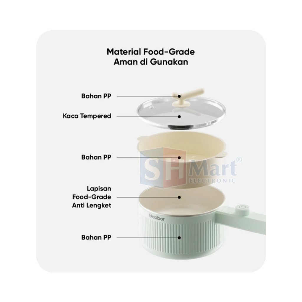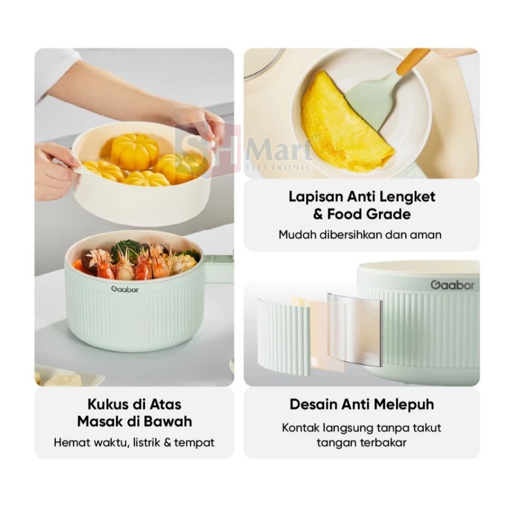 Gaabor Panci Listrik Kapasitas 2 Liter Food Grade Electric Cooker Anti Lengket EC-20M01A