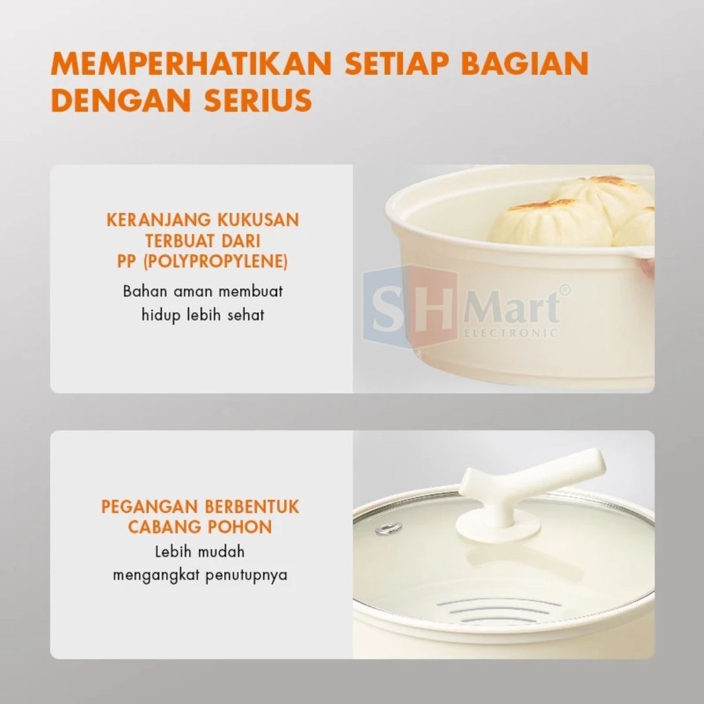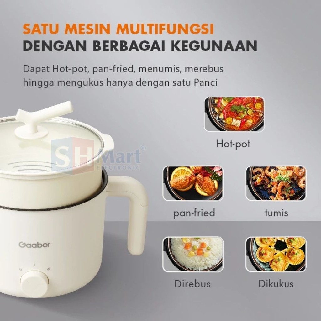 Gaabor Panci Listrik Serbaguna Cooker Electric Anti Lengket Kapasitas 1.5L 600W Steamer GR-N15A