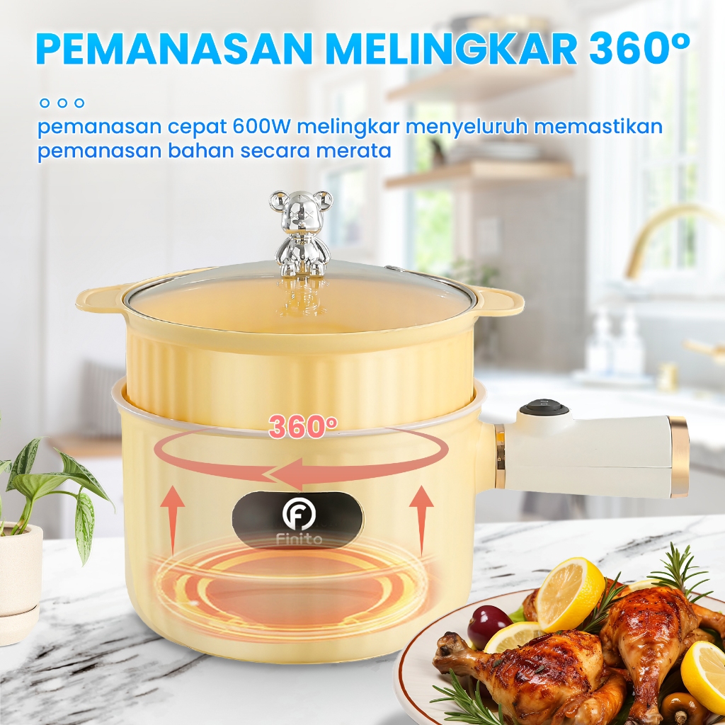 FINITO Panci Listrik Stimmer Minimalis Daya Rendah Serbaguna Bisa Mengkukus/Menggoreng/Merebus Steamer Elektrik Bergaran