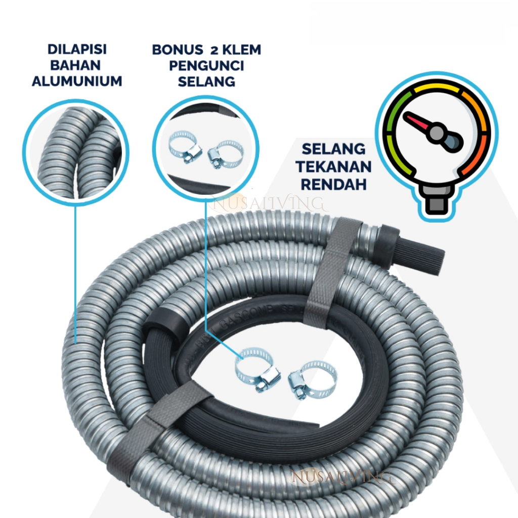 Selang Spiral 1.8M Gas Selang Regulator Gas Tekanan Rendah Fleksibel Anti Bocor SELANG WINN GAS BERGARANSI