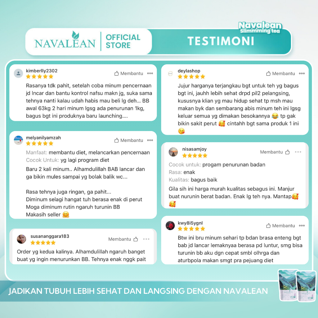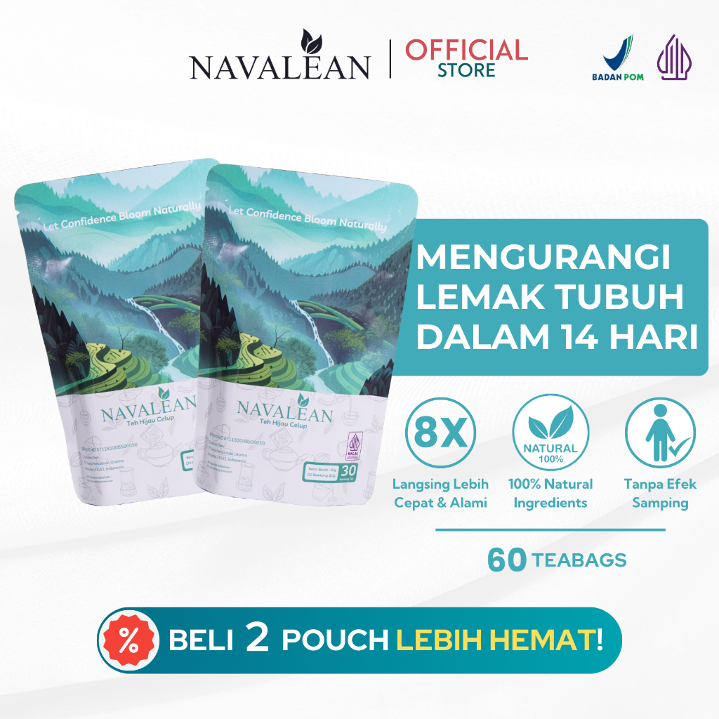 NAVALEAN TEH HIJAU DIET PAKET HEMAT 2 POUCH - PELANGSING HERBAL ALAMI TEH DETOX PENURUN BERAT BADAN