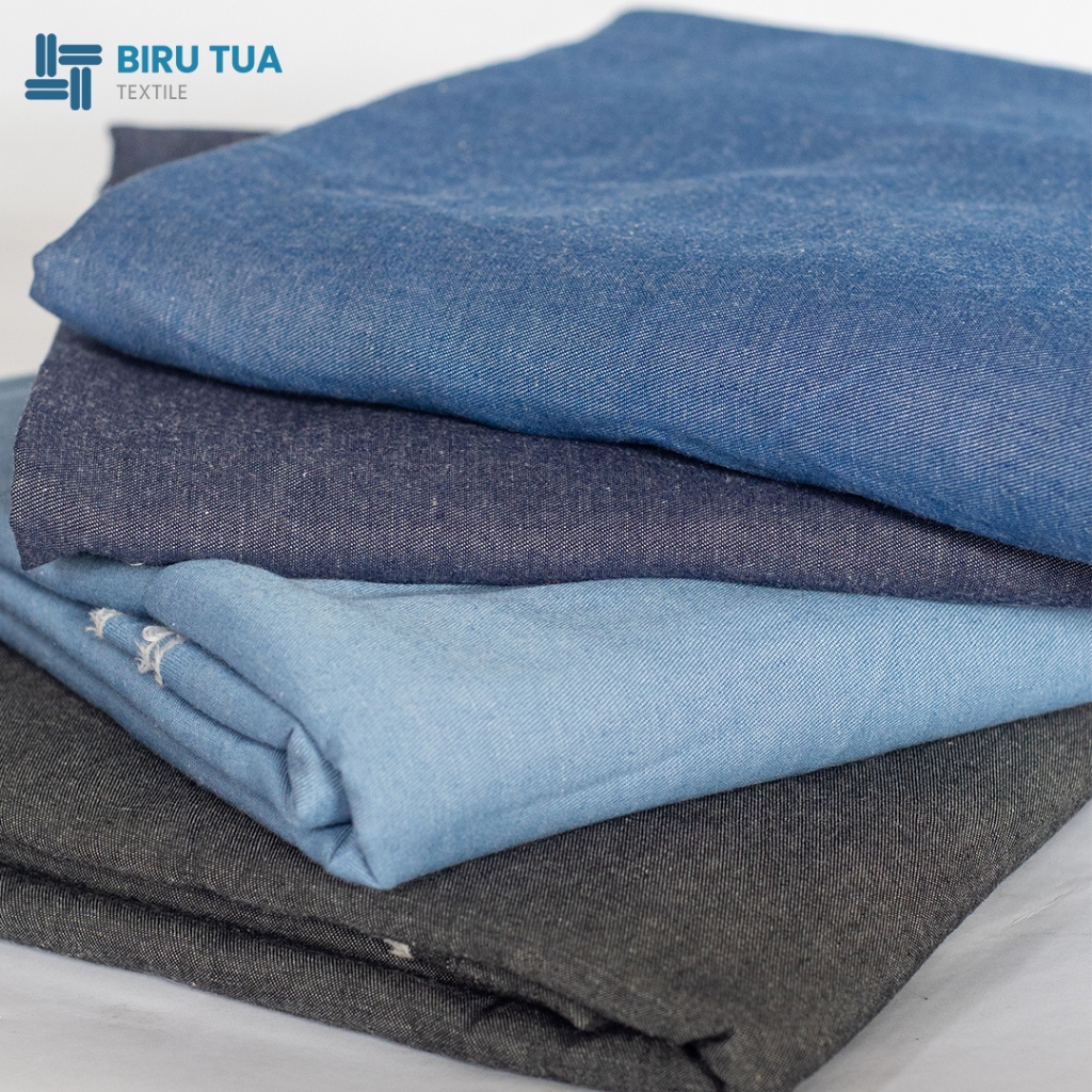Bahan Kain Baby Chambray Twill Poli Katun Semi Denim Polos