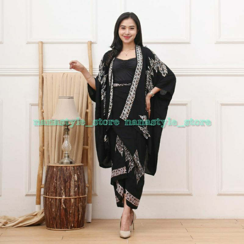 OUTER KIMONO CARDIGAN BATIK WANITA OUTFIT COUPLE SETELAN ROK LILIT