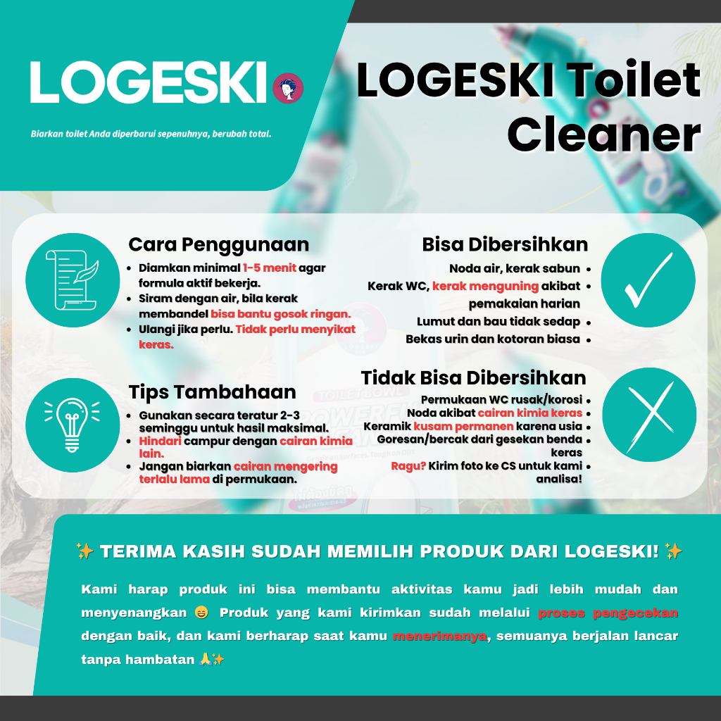 Logeski Pembersih Toilet Cleaner Paket 3 Botol & Keramik Bersih Tanpa Sikat Anti Bakteri - 500ml