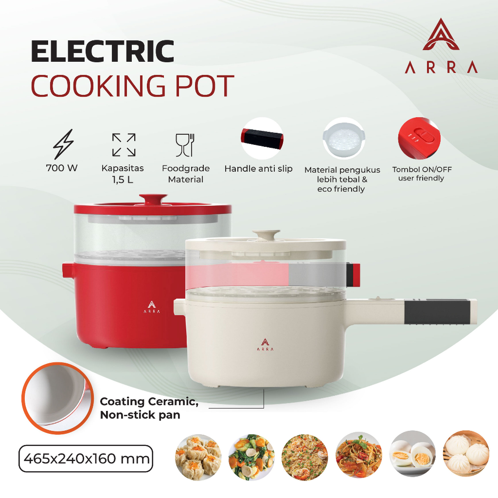 [CLEARANCE SALE] ARRA Electric Cooking Pot Panci Listrik Coating Ceramic Non-Stick Pan Multifungsi
