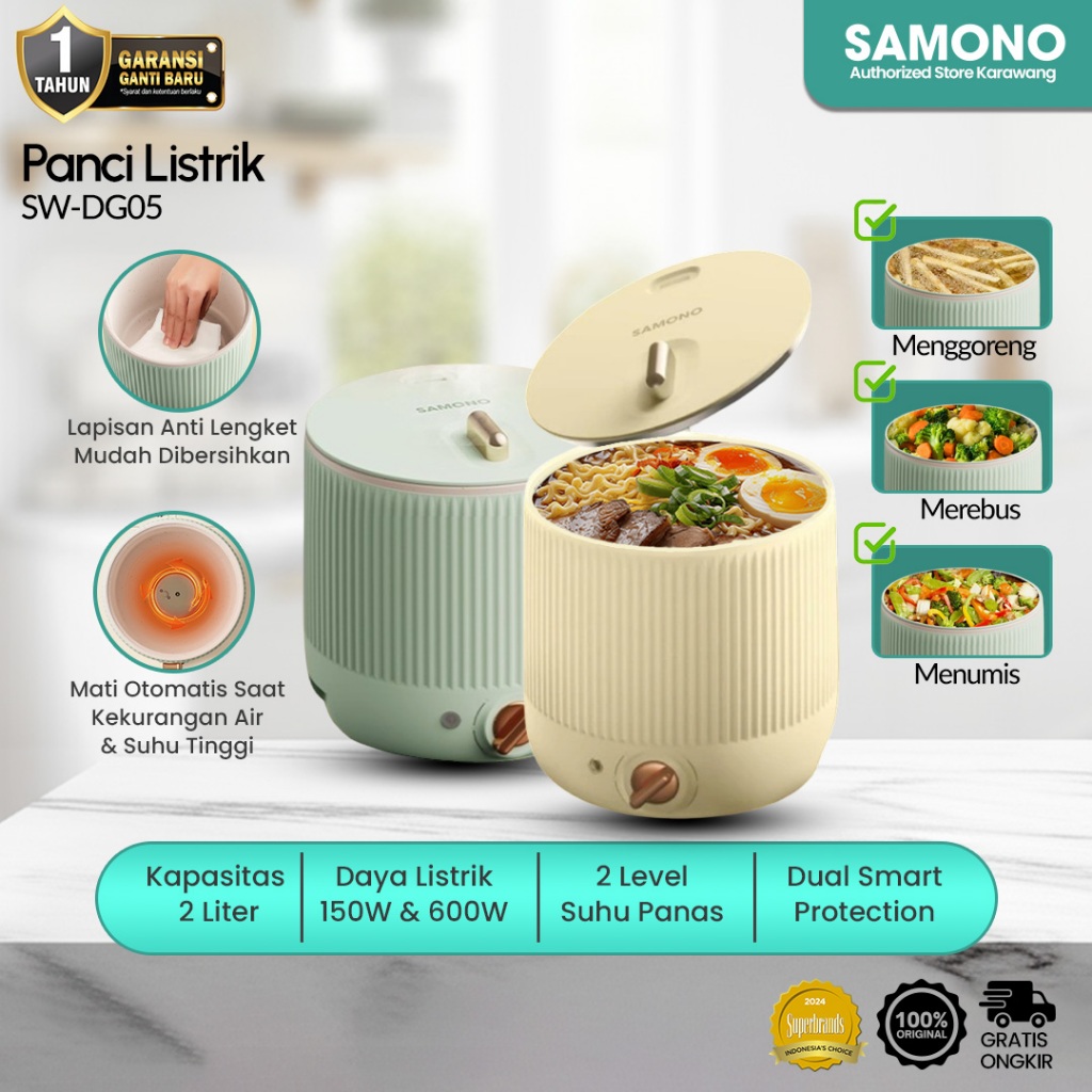 SAMONO Panci Listrik Keramik Serbaguna Mini Slow Cooker Serbaguna Garansi Resmi 1 Tahun SW-DG05