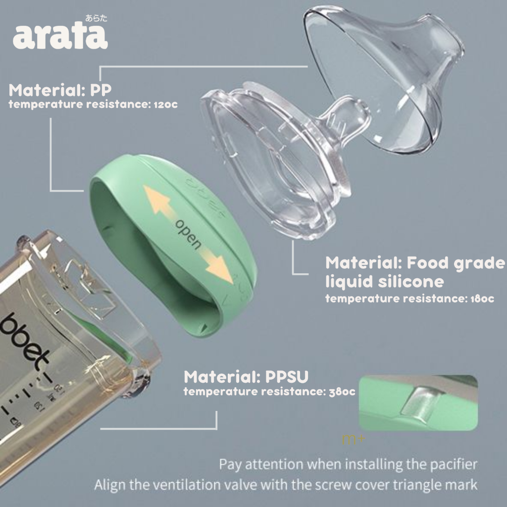 ARATA Botol Susu Bayi Dot Baby Feeding Bottle Triangle PPSU Wide Neck Anti Colic 150ml 240ml