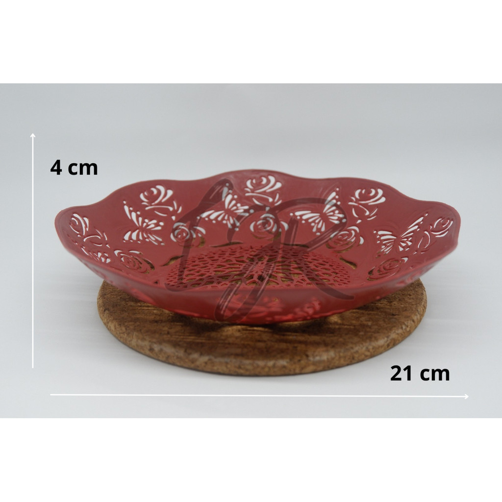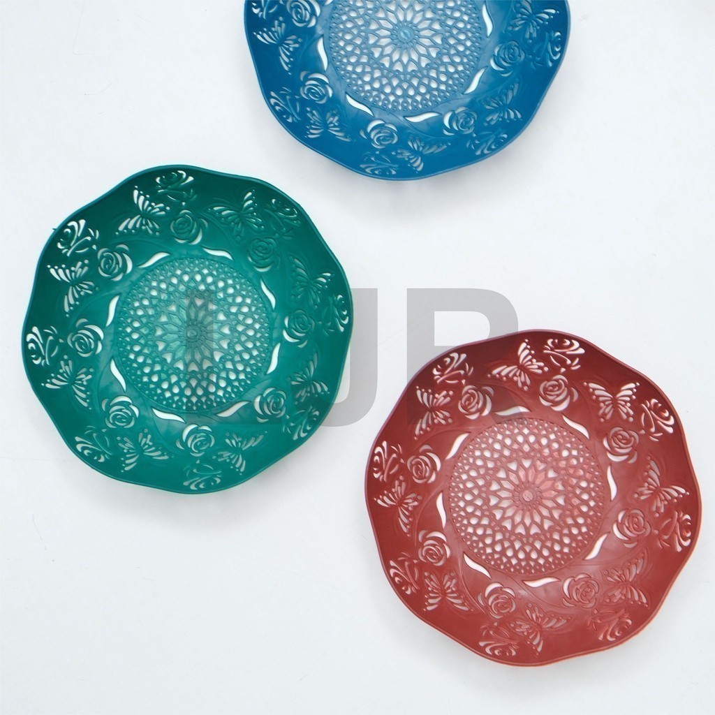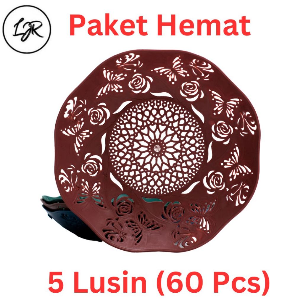 LJR Piring Plastik Rotan Motif Bunga Kupu Kupu 21cm Warna Coklat - 5 Lusin