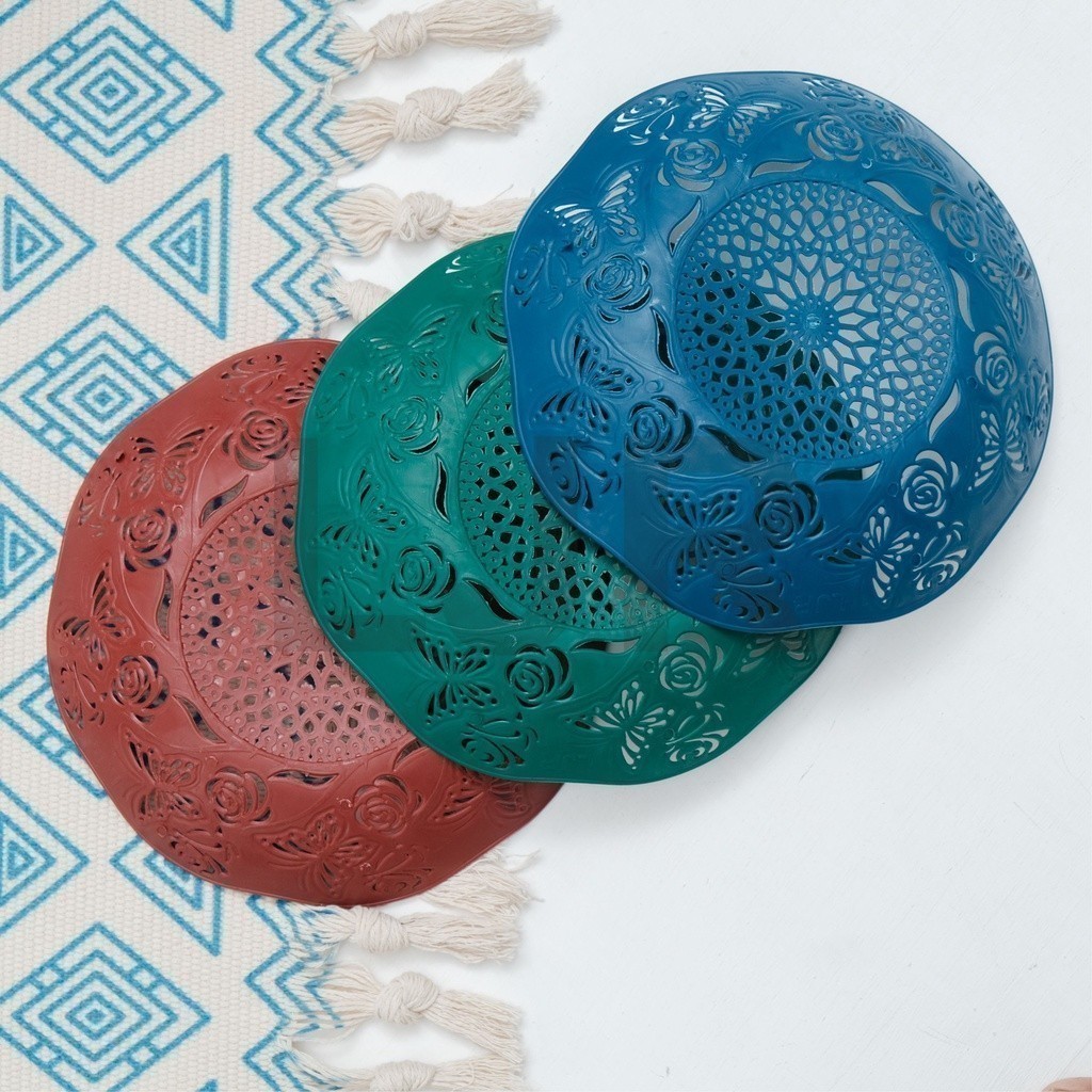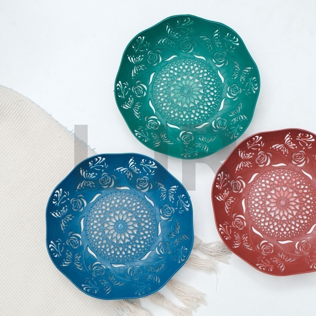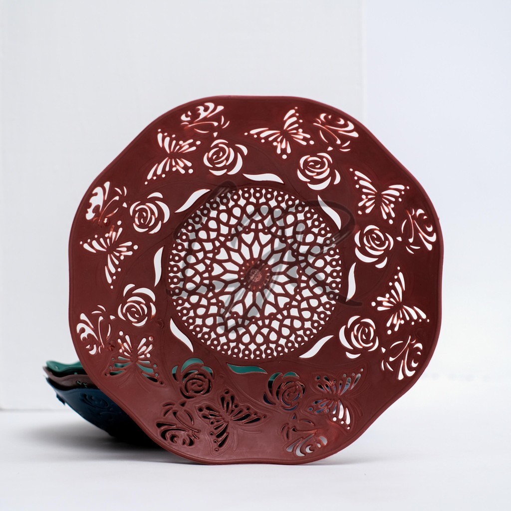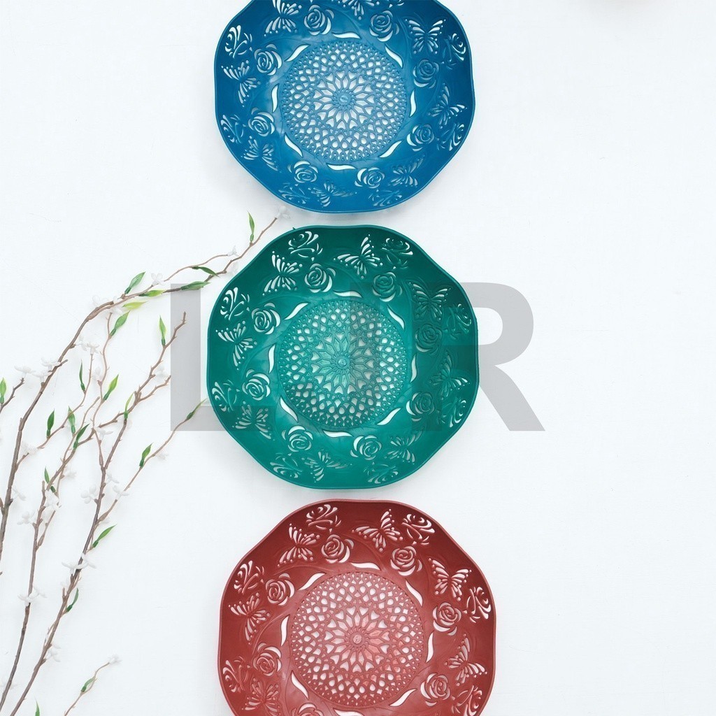 LJR Piring Plastik Rotan Motif Bunga Kupu Kupu 21cm Warna Coklat - 5 Lusin