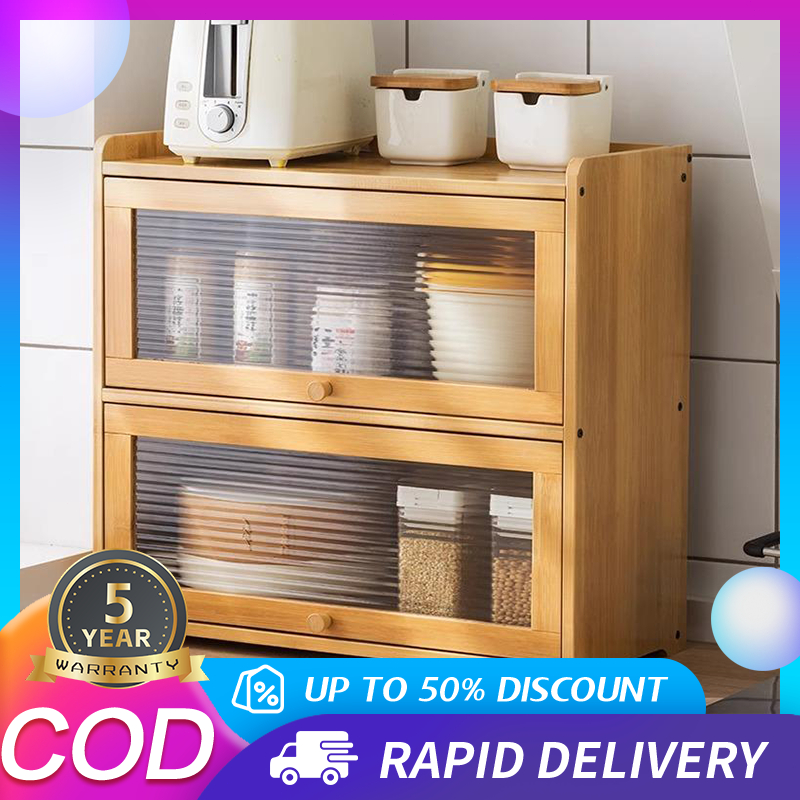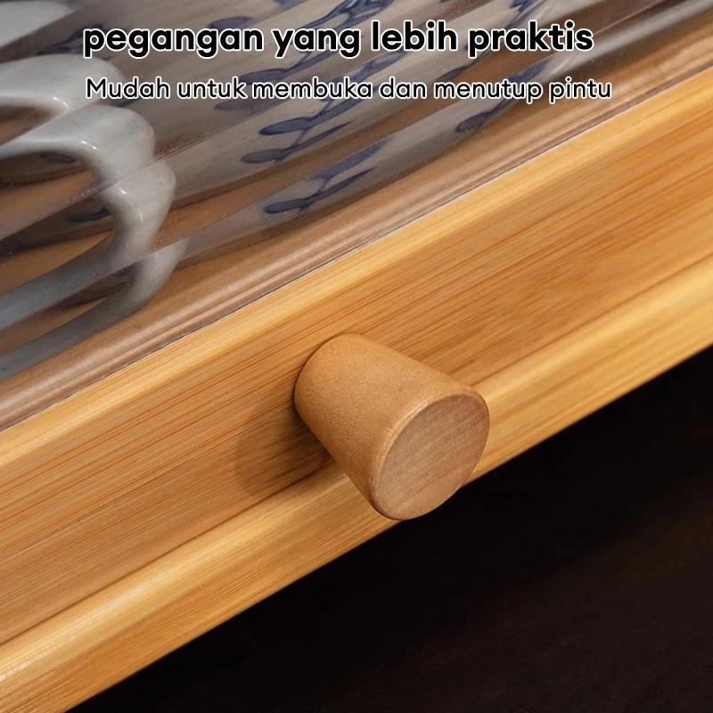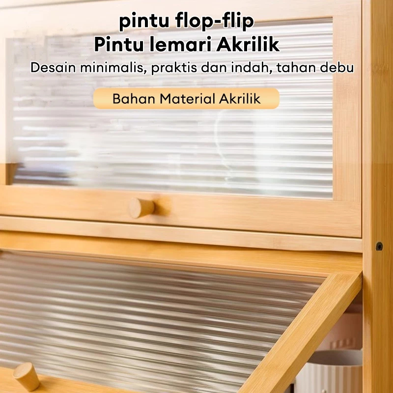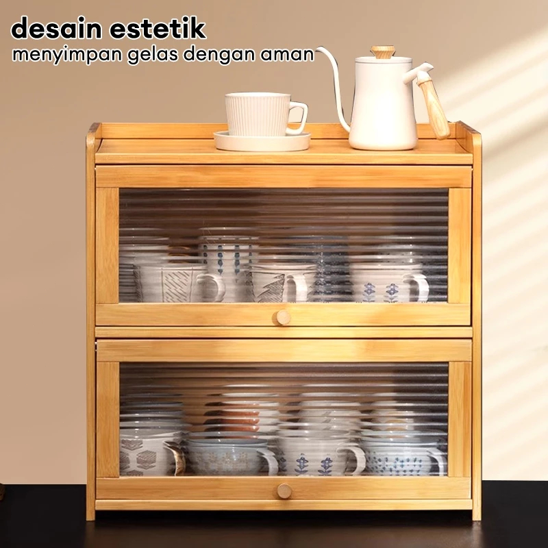SET 3 Kabinet Dapur Minimalis Kayu - Ukuran 28/42/50cm, Pintu Kaca Buram & Rak Terbuka Estetik