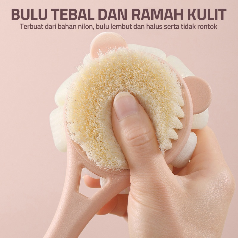 GM Bear Sikat Punggung Badan dan Sponge Puff Loofah 2 IN 1 2253 - Sikat Punggung Shower Puff 2 IN 1