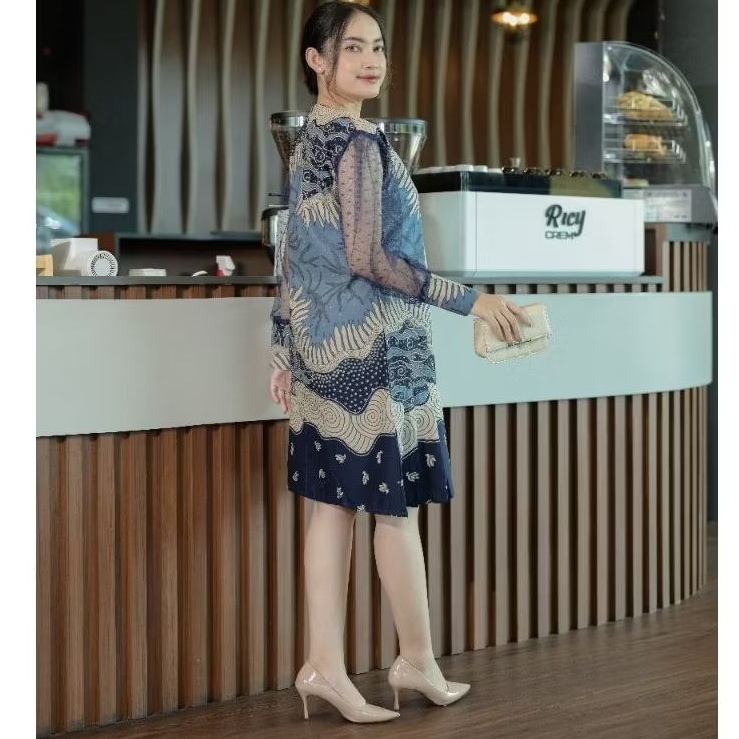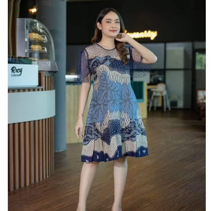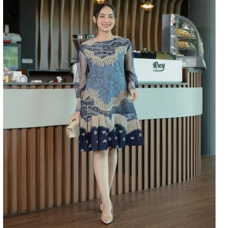 BATIK PASANGAN COUPLE DEWASA MOTIF DEFINA PAKAI LAPIS TRIKOT ATASAN BATIK HEM DRES