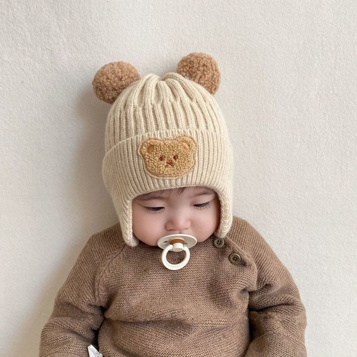 Topi Kupluk Bahan Rajut Anak Bayi Karakter BEAR dg POMPOM Beanie Hat