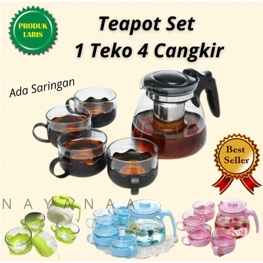 TEA POT SET ISI 5 (1 Teko + 4 Cangkir) Premium