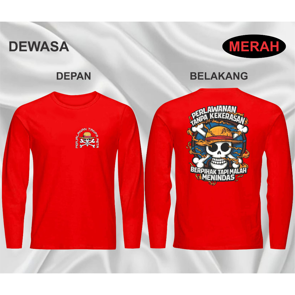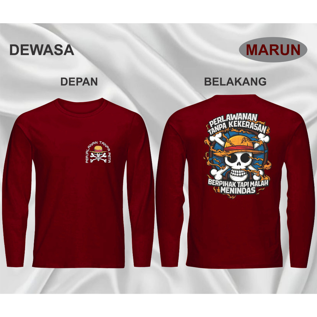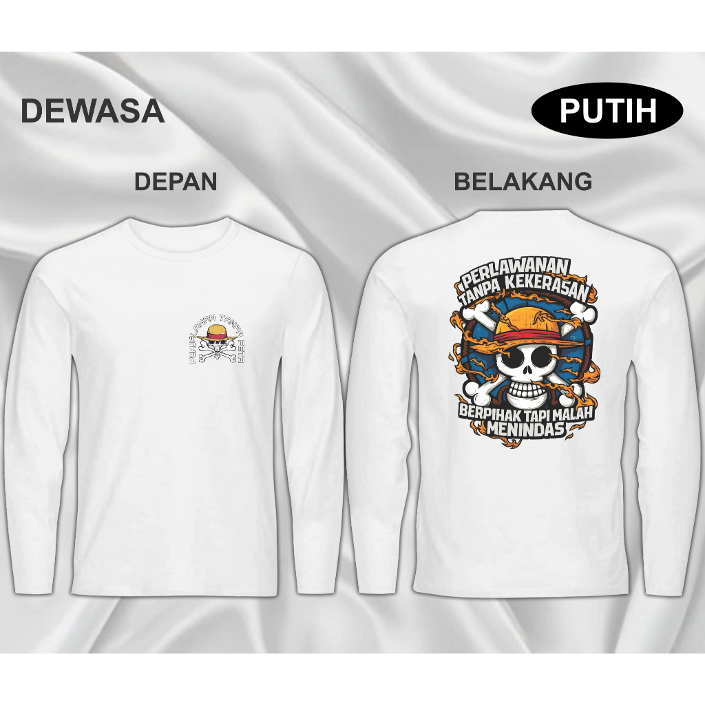 ONE PIECE TANPA KEKERASAN PAKAIN PRIA ATASAN T-SHIRT KAOS LENGAN PANJANG GAMBAR DAN KATA LUCU UNISEX