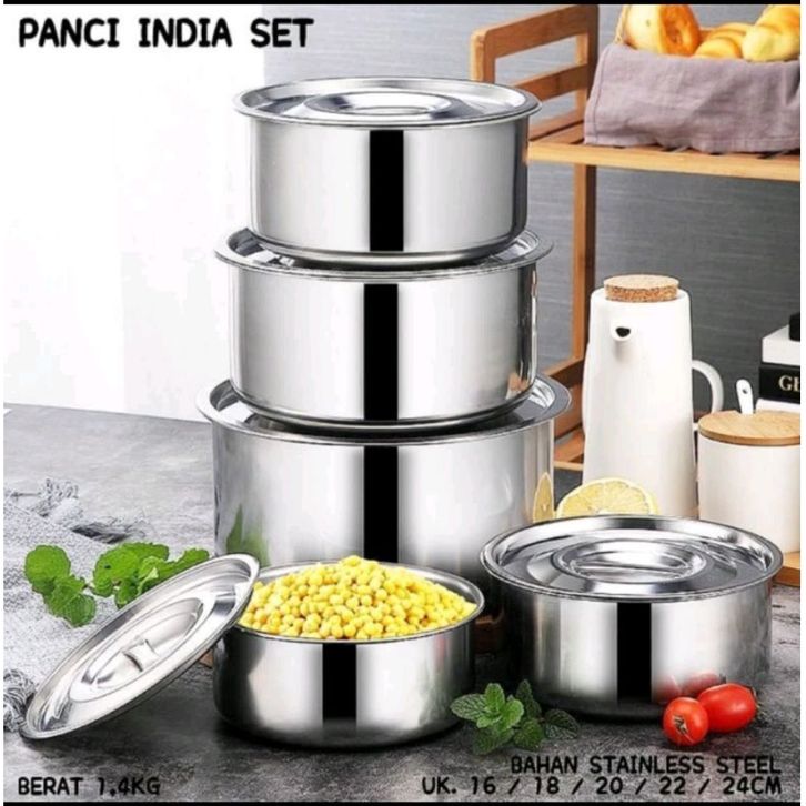 RK - PANCI INDIAN SET STOCK POT STAINLESS STEEL SERBAGUNA antti kaarat
