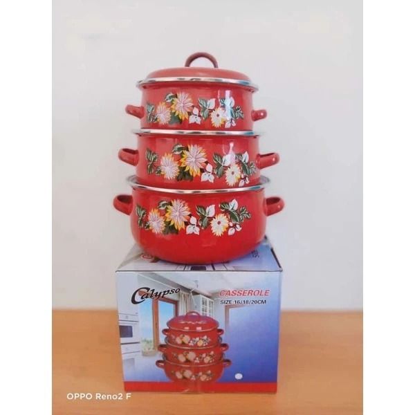 RK - PALING LAKU TERLARIS Panci Set Enamel Motif Kembang 3 pcs /9ratis Packing Double Dus dan Bubble Wrap / Panci Susun