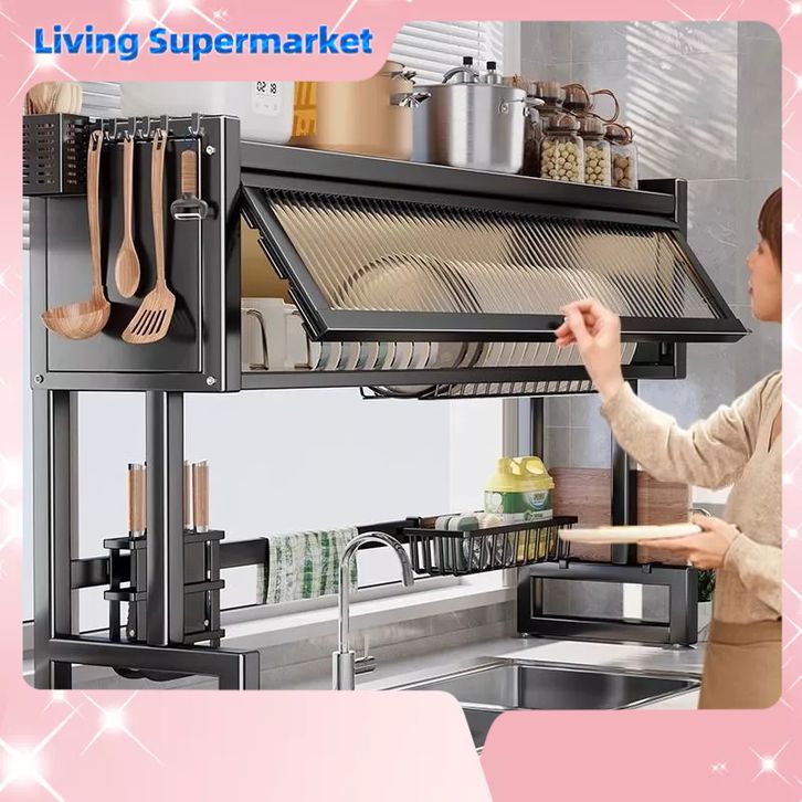 RK - 65CM-105CM Rak Piring Dapur Stainless Steel Rak Piring Tertutup Gantung Cuci Piring Wastafel