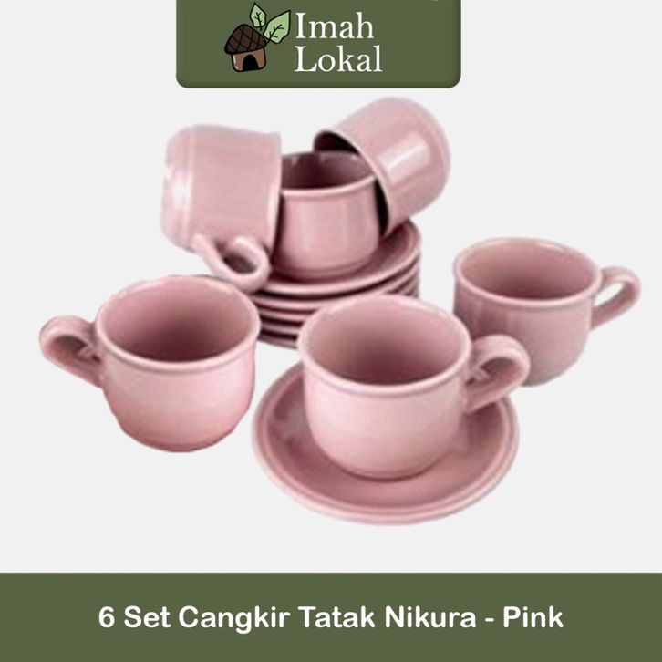 RK - 6 Set Cangkir Nikura + Pisin Tatakan | Gelas Minum Cafe Kopi Teh Warna