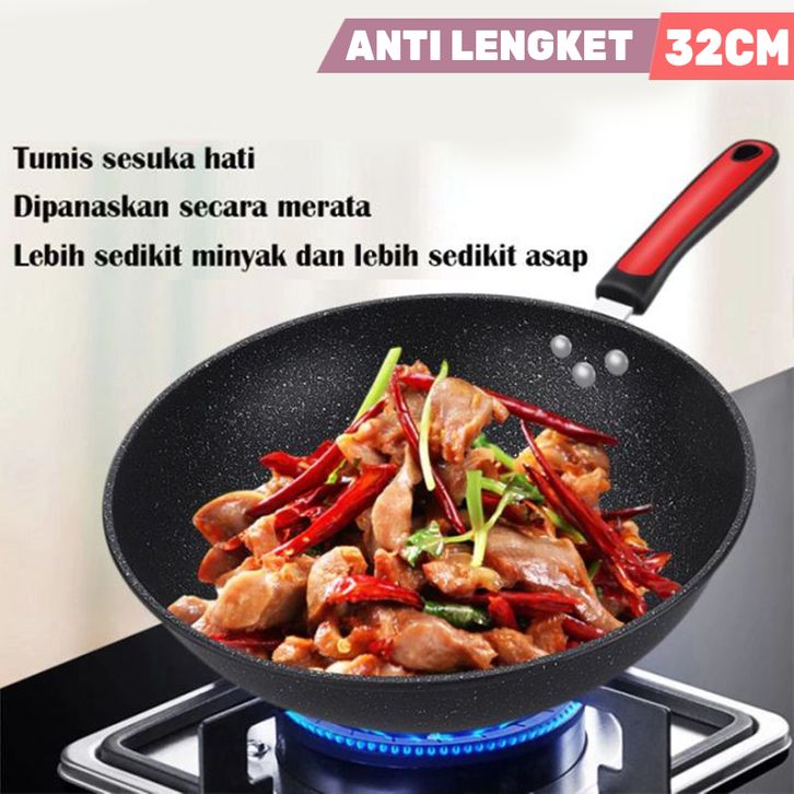 RK - PAKET HEMAT Wajan Wokpan Marble 32cm + Panci Steamer 28 CM Stainless + Wajan BBQ Datar 34 CM