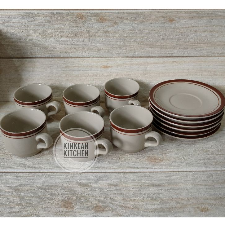 RK - Cangkir Set Lucky Keramik List Coklat 6pcs + Lepek Pisin