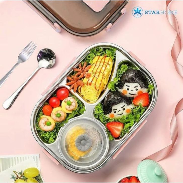 RK - 304 kotak bento portabel 4 kompartemen dari bajja tahan karat Kotak makan siang untuk anak-anak , anak sekolah, pe