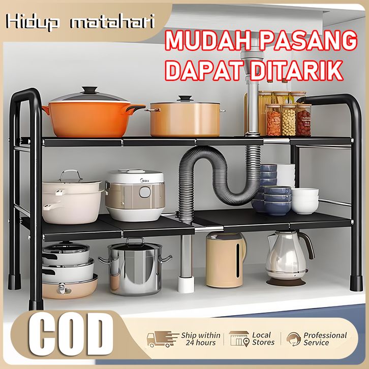 RK - Rak Panci Wastafel Dapur Stainless Steel Tersusun Susun 3-5 Tingkat - Rak Kolong Dapur Bawah Sinki Dapat Ditarik &