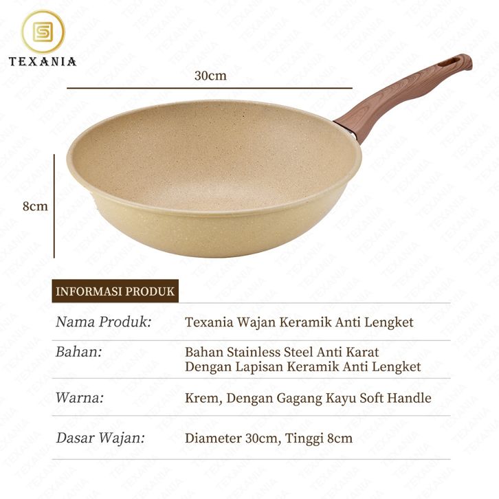 RK - NEWTEXANIA Wajan Keramik 30cm Wajan Anti Lengket Warna Cream Kitchenware