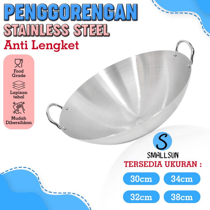 RK - SS Wajan Stainless Steel Putih Kualitas Premium Tebal Ukuran 30 32 34 36 38 409ratis Ongkir