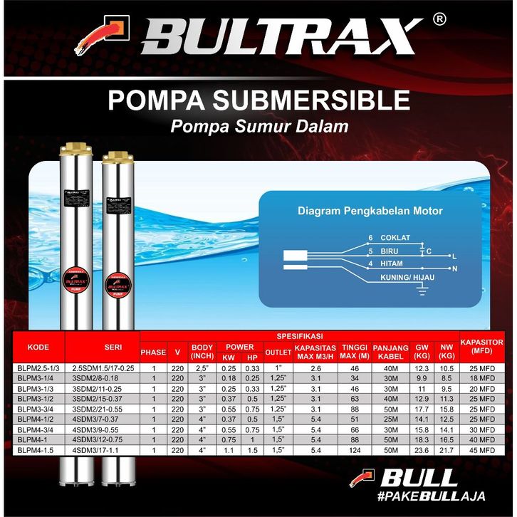 Bultrax Pompa sumur dalam submersible BLPM4-1/2