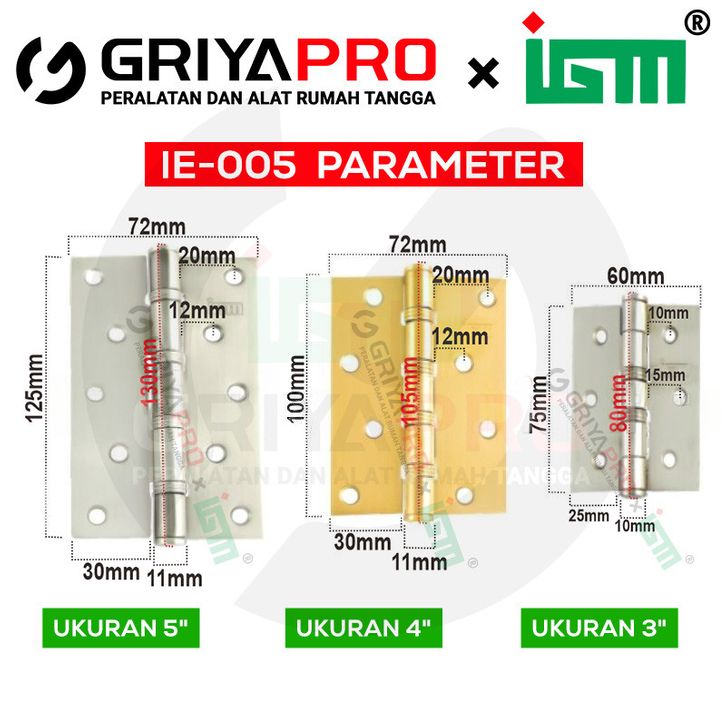 TERLARIS Engsel Besi Pintu Jendela 3"/4"/5" Inch Untuk Laci Triplek Kandang Aluminium Gratis Sekrup Sepasang