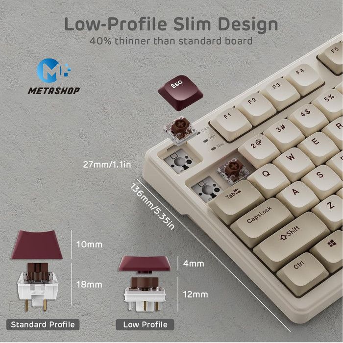 keyboard gaming Royal Kludge RK N80 Low Profile Wireless Mechanical Keyboard Gaming Hotswappable
