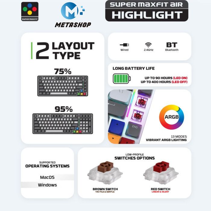 keyboard gaming FANTECH SUPER MAXFIT AIR MK916 MK915 Tri Connections Wireless Bluetooth Low Profile Keyboard Mechanical