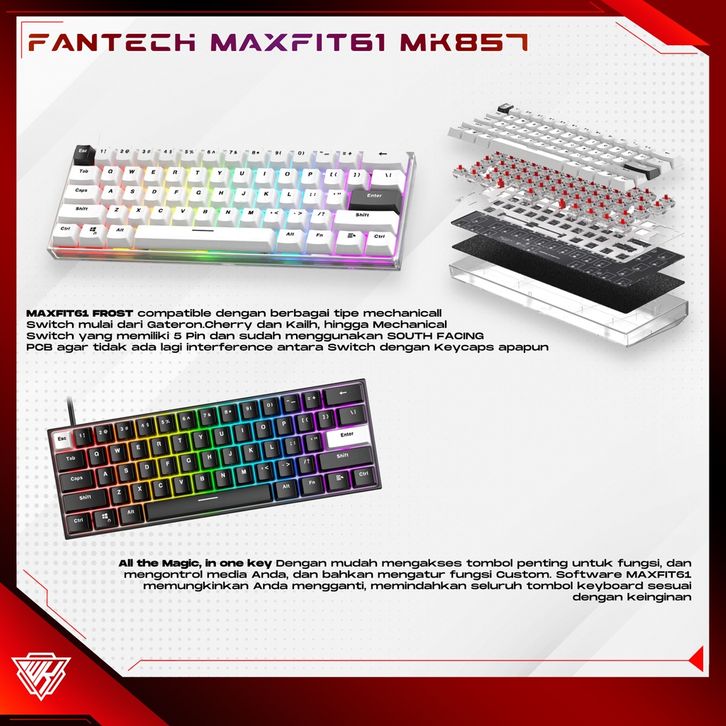 keyboard gaming Fantech MAXFIT61 FROST Wired Hostwap Keyboard Gaming Mechanical RGB
