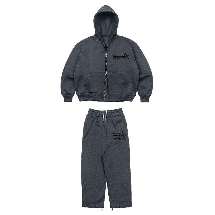 GROSIR Himside - Roar Hoodie Double Zip Dark Grey One Set Fleece - Unisex usogs