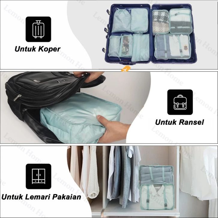 GROSIR Lemon Home [Garansi 1 Tahun] 8 In 1 Travel Bag Tas Travel Organizer Bag Pouch Set Storage Tas Penyimpanan