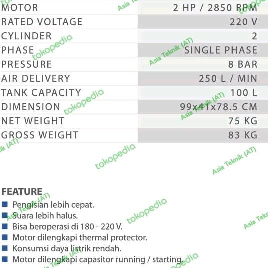 Kompresor multipro 2 hp tipe vanbelt. Multipro VBC 100/100. Listrik