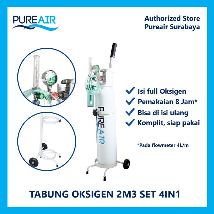 PROMO Pureair Tabung Oksigen 2M3 Set Komplit 4in1 (Tabung + Isi Oksigen + Regulator + Troli) esagg