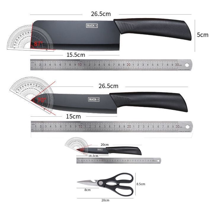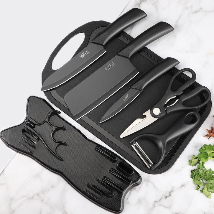 RK - Kitchen Knife Set Hitam Pisau Dapur 5 in 1 Free Talenan Peralatan Dapur Multifungsi