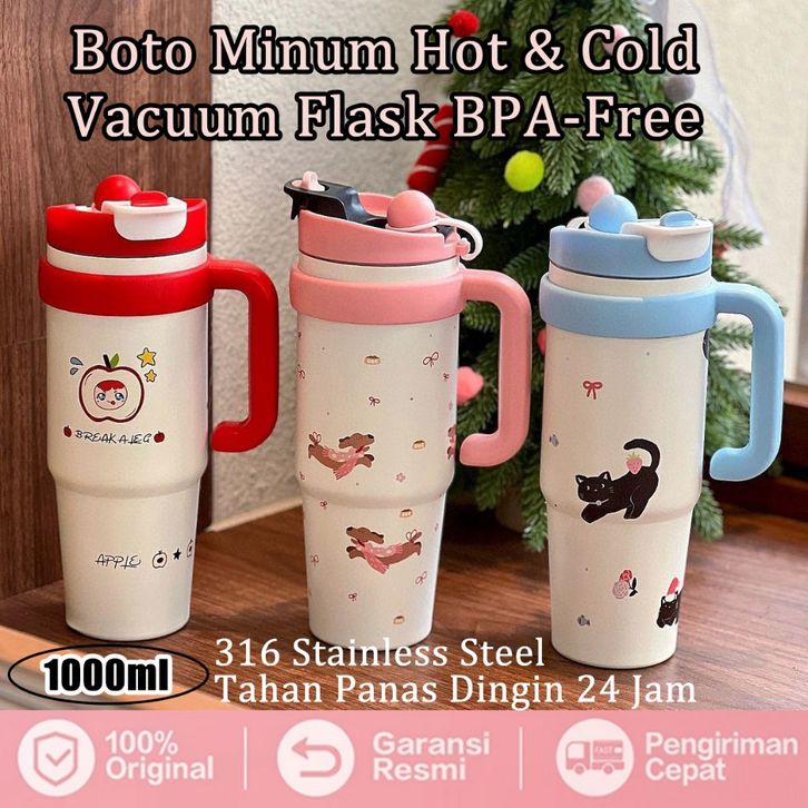 RK - Tumbler Stainless Steel Vacuum 1000ml - Botol Minum Portabel Tahan Panas/Dingin , Merah/Biru/Merah Muda