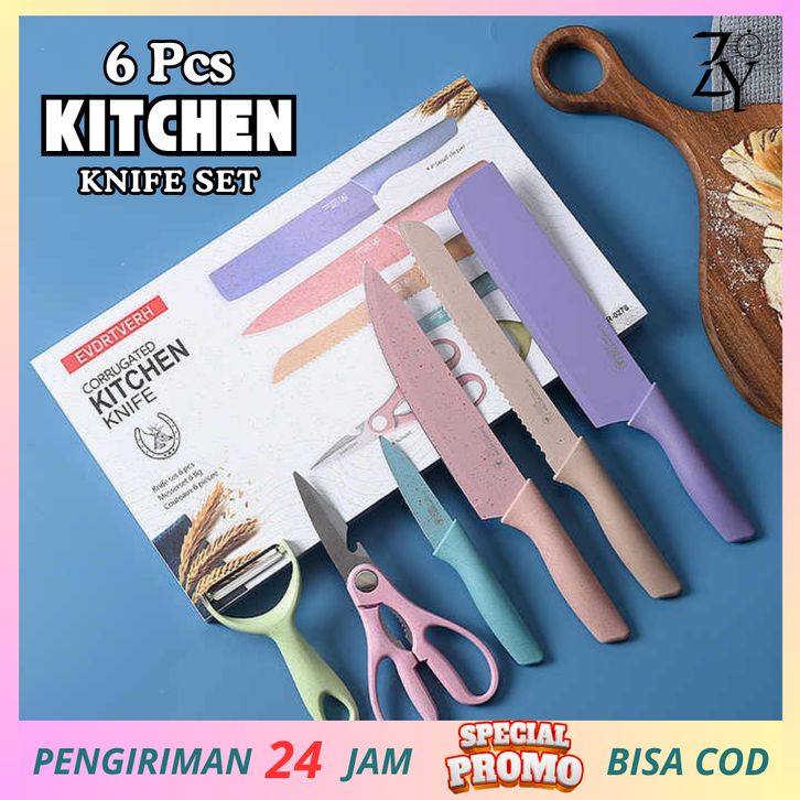 RK - THE TIME-PISAU & GUNTING DAPUR Pisau Dapur Set 6 in 1 Bahan Stainless Steel Kualitas Premium Tajam Kokoh antti kaa