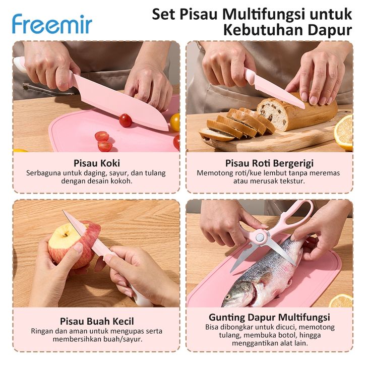 RK - freemir Surabaya Pisau Set Dapur Pink antti kaarat Tajam Pemotong Buah Sayur Higienis