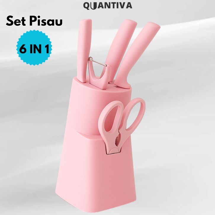 RK - QUANTIVA C2 Pisau Keramik Set 6 Pcs – Lengkap dengan Stand Penyimpanan Praktis