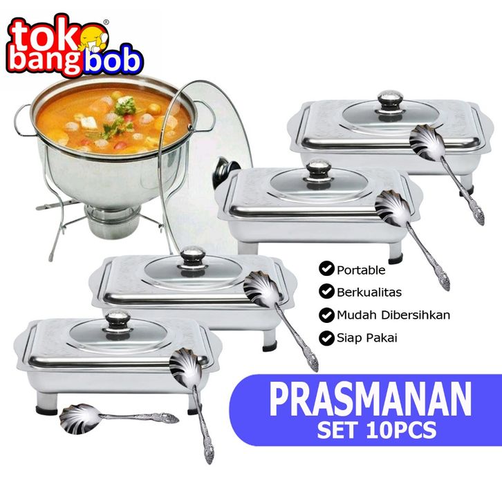 RK - Paket Prasmanan Stainless Dan Warmer Stove Plus Sendok Paket Prasmanan Pesta Set 10pcs