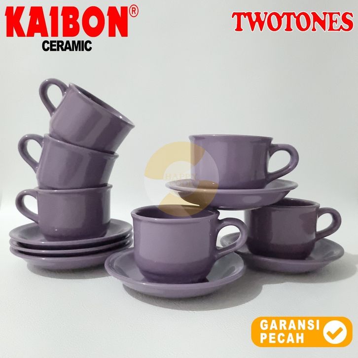 RK - KAIBON 12pcs Solid Color Series Cup & Saucer Set Cangkir Tatakan 6 Pasang Purple Gift Box