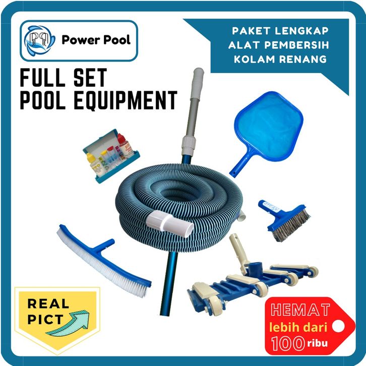 Murah Alat Kolam Renang Fullset Pool Kit Perawatan Kebersihan Vacuum Head 8 Roda Selang 9 meter Keren