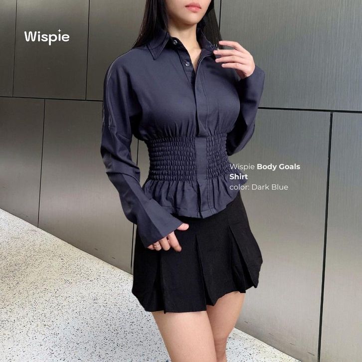Wispie Body Goals Shirt | Kemeja kerja fitted wanita karet korset maroon putih Panjang Casual Shakila